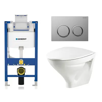 Vägghängd Toalettstol Ifö Sign 6875 i ett komplett paket med WC-fixtur, toalettsits och spolknapp.&hellip:
