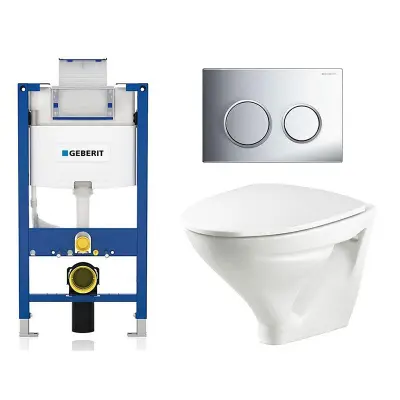 Vägghängd Toalettstol Ifö Sign 6875 i ett komplett paket med WC-fixtur, toalettsits och spolknapp.&hellip: